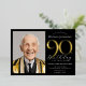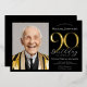Elegant Custom Photo Black Gold 90th Birthday Foil Invitation. Celebrate a milestone birthday with our Black and Gold Simple Elegant invitation, perfect for adding a touch of sophistication to your special day. This customisable design features a sleek black background adorned with elegant gold accents, creating a timeless and classy look. Personalise it further with a custom photo to make your invitation truly unique and memorable. Ideal for those who appreciate a refined aesthetic, this invitation sets the tone for a celebration that will be cherished for years to come.