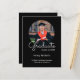 Share your latest steps with family and friends with this elegant graduation announcement postcard. Featuring a timeless black background, this design showcases the graduate’s name, degree, and institution alongside a photo of your choice. The back includes a personalised announcement message, allowing you to share future plans with friends and family. Perfect for college and university graduates, this stylish and traditional postcard is a sophisticated way to mark this milestone.