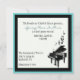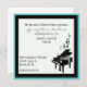 Lovely piano recital invitation done in a square format, with a teal and black frame around the edges. Graphics of a black grand piano, with musical notes floating up, decorates the right bottom corner of the invitation. All text is customisable to suit your event needs. Lovely way to showcase your students recital.