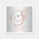 Modern yet elegant wedding napkins for your reception.  LETTER 'J' monogram, initial. Not cheap looking but expensive and classy. Last name,  bride and groom's names and date.  Faux rose gold letter with faux diamond heart. Font and size can be edited. Background colour (silver  grey) can be changed. Cocktail napkins also available. Found in 'Wedding NAPKINS & PLATES' wedding collection.  Contact Designer for special designs (letters and colours)