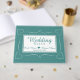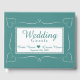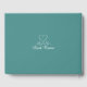 Elegant Custom Teal Wedding Heart Guestbook. Princess style design with calligraphy hearts and line art. The names of the Bride and Groom are beautifully displayed on the front of the book, along with the date. A title is also on the spine of the book and the date appears there as well. The couples last name can optionally be included on the back of the book. The background and text colours can easily be changed by clicking the "Customise" button.