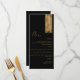 Why spend in place cards and menu cards when you can have an elegant All-in-one elegant Menu personalised with each guest name! Contemporary, simple and elegant design with beautiful golden stripe with guest name in modern hand written calligraphy in black. Back in black. NOTE: please an individual order for each menu by adding guest name into menu, add menu into shopping cart; then come back to menu, add second guest name, add menu to shopping cart...continue with this process with all guest names on your list. For short first guest names, add with your keyboard spacebar a few empty "spaces" before name in order to centre name. Design also available in black and white. Part of our "Wedding and Event Products in Black" collection with a variety of coordinating products available.