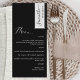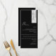 Why spend in place cards and menu cards when you can have an elegant All-in-one elegant Menu personalised with each guest name! Contemporary, simple and elegant design with beautiful white textured stripe with guest name in modern hand written calligraphy in black. Back in black. NOTE: please an individual order for each menu by adding guest name into menu, add menu into shopping cart; then come back to menu, add second guest name, add menu to shopping cart...continue with this process with all guest names on your list. For short first guest names, add with your keyboard spacebar a few empty "spaces" before name in order to centre name. Design also available in black and gold. Part of our "Wedding and Event Products in Black" collection with a variety of coordinating products available.