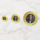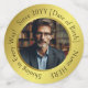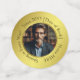 The design features a customisable photo and a typography field for personalisation with a name, birthdate, wish, or words of wisdom, all presented in a round format on an elegant golden gradient background. The text currently reads "Shining in Every Way!" and "Since 20YY" for birth year personalisation. It is a simple, fun, and elegant gift for anyone on their birthday or special celebration. It can also be used for family, friends, or work colleagues whom you consider as golden people, or for special celebrations as personalised party favours for birthdays, retirements, anniversaries, New Year party, or any other golden occasion.