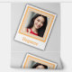 The design is of a photograph featuring a customisable photo and typography field, which currently reads "Elegance" for name, monogram or other personalisation on a saffron mango, apricot peach coloured backing - all presented in a simple, elegant pattern on a light grey background.