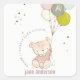 Elegant Cute Blush Bear Balloon Kids Monogram Square Sticker