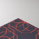 Abstract pattern made with repeated lines forming polygonal geometric shapes in flower abstraction. Decorative, classical, simple, cute graphic art in orange and purple colours.