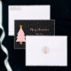 The artwork features a pink Christmas tree topped with a golden star, in an elegant presentation along with two customisable typography fields for name and address customisation.