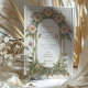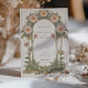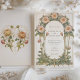 This exquisite wedding invitation set features an elegant Art Nouveau design adorned with intricate dahlia motifs. The front of the invitation beautifully frames the wedding details with lush green foliage and vibrant dahlias in shades of cream and peach, set against a classic white background. The back of the invitation showcases a heart-shaped arrangement of matching dahlias, creating a cohesive and sophisticated look. Perfect for a garden or vintage-themed wedding, this invitation set combines timeless elegance with artistic beauty, making it an unforgettable piece of wedding stationery.