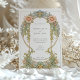 This exquisite wedding invitation set features an elegant Art Nouveau design adorned with intricate dahlia motifs. The front of the invitation beautifully frames the wedding details with lush green foliage and vibrant dahlias in shades of cream and peach, set against a classic white background. The back of the invitation showcases a heart-shaped arrangement of matching dahlias, creating a cohesive and sophisticated look. Perfect for a garden or vintage-themed wedding, this invitation set combines timeless elegance with artistic beauty, making it an unforgettable piece of wedding stationery.