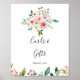 This elegant dainty autumn floral cards and gifts sign is perfect for a modern wedding or bridal shower. The design features illustrated pink, blush and white roses, peonies with green foliage clustered into bouquets, accentuating the beautiful fall colors.