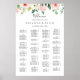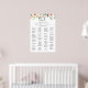 This elegant dainty floral alphabetical seating chart is perfect for a modern wedding. The design features illustrated pink, blush and white roses, peonies with green foliage clustered into bouquets, accentuating the beautiful fall colours.