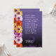 Add style to your wedding reception with this floral-themed table seating chart, which lets guests find their table. Features elegant white lettering, garlands of colourful African daisies, and lavender purple confetti set on a violet purple to black background. Customise with names of the attendees and table number.
