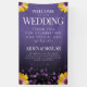 Add style to your special day with this floral-themed welcome banner, which features elegant white lettering with lavender purple confetti and golden African daisies on a violet purple to black background, and lets guests know to go for the wedding or wedding reception. Customise with the newlyweds' names, wedding date, venue, and message(s).
