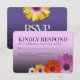 Add a touch of artistic elegance to your impending nuptials with these floral-themed wedding RSVP cards, which feature elegant white lettering with lavender purple confetti and garlands of colourful African daisies on a violet purple to black background. Use as is, or personalise as desired.