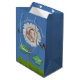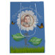 Elegant Daisy Blue Floral Cute Baby Photo & Name Medium Gift Bag