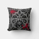 A beautiful dark grey and black damask pattern with blood splatters. Shown here on a square throw pillow. This would go well with a spooky vampire Halloween theme.