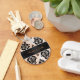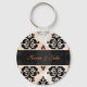 Elegant black and satin looking peach damask design key chain, with a stripe in the middle to personalise with your names. Lovely little gift idea for bride's maids or for the bride.
