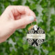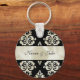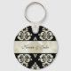 Elegant black and satin looking tan damask design key chain, with a stripe in the middle to personalise with your names. Lovely little gift idea for bride's maids or for the bride.