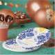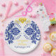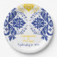 Elegant damask motif royal blue, yellow wedding paper plate