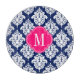 Fashion and elegant dark dark blue Navy and white diamond floral damask pattern. Pink blue frame. Personalise it with your monogram, name or initials. Click on the "customise it" button if you want to do any changes to the design. Choose font style and colour. Trendy damask pattern for girly girls.