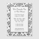 A custom coffee house or restaurant advertising magnet with simple letters for your address and information on an elegant black damask pattern on white.
