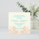 Elegant damask motif peach, aqua, ivory wedding invitation. A modern yet classic wedding invitation design with a retro flair. A delicate wedding invitation with a vintage feel to it, perfect for a contemporary or traditional spring or summer wedding.