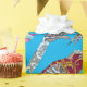 Elegant Dancing Birds on Blue Sky Pattern Glossy Wrapping Paper