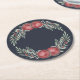 Elegant Dark Blue Christmas Ornament Red Berries Round Paper Coaster