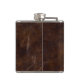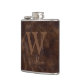 Elegant Dark Brown Cow Leather Texture Monogrammed Hip Flask