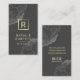 Elegant Dark Floral Gold Monogram Logo Hair Stylist Makeup Artist Business Card.