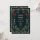 This elegant wedding invitation features a rich dark floral design with deep red roses, lush greenery, and delicate gold accents. The intricate botanical frame adds a vintage touch, creating a timeless and sophisticated aesthetic. The deep hues contrast beautifully against the dark background, making it perfect for romantic, moody, or classic wedding themes. With customisable text, this invitation offers a refined and stylish way to announce your special day.