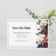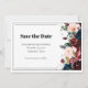 This Save the Date card features elegant serif typography and bold florals in deep colours. This sophisticated card provides a chic aesthetic that perfectly complements your wedding invitation suite, ensuring your guests mark their calendars in style.