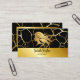 Make a stunning first impression with this glamourous business card. It features a striking golden silhouette of a woman with flowing hair, set against a chic black background with a luxurious gold crackle effect. A customisable gold banner highlights your name and profession . The reverse side provides ample space for your salon's name and all essential contact information, including phone, email, website, Facebook, and Instagram. Perfect for hairstylists, beauty salons, makeup artists, and other creative professionals.