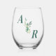 Elegant Dark Green Floral Wedding Stemless Wine Glass