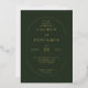 This elegant wedding invitation features a sophisticated dark green background with gold text, creating a luxurious contrast. The design includes a large oval frame that centers the text, arranged symmetrically for clarity and visual appeal. Classic serif fonts enhance the formal tone, while ample negative space ensures each element stands out distinctly. Perfect for conveying a sense of refinement and celebration, this invitation is ideal for those seeking a timeless and chic aesthetic for their special day.