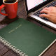 An elegant notebook featuring a dark green leather texture with gold script accents. This stylish and sophisticated design offers a premium feel, making it perfect for jotting down notes, ideas, or important thoughts in a refined, luxurious way.