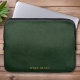 Elegant Dark Green Leather & Gold Typography name Laptop Sleeve