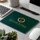 Enhance your workspace with this emerald green leather print mouse pad, designed to combine style and functionality. Featuring a luxurious gold logo and the option to add two lines of custom text, this mouse pad is perfect for personalising with your name, business, firm, or any other details of your choice.