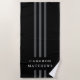Beach towel with three dark grey lines running from top to bottom and your name across.