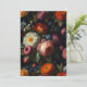 Each bloom is meticulously rendered, capturing the essence of old-world charm and sophistication. The contrast between the vibrant hues of orange, pink and white and the darkness of the background creates a dramatic and captivating effect, drawing the viewer into a world of mystery and allure.