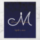 Elegant Dark Navy Blue Gold White Monogram Floral Wine Label