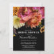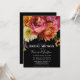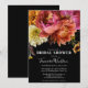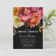 This elegant dark moody pink, peach, rose, orange, yellow and white floral bridal shower invitation on a black background features feature a rich flower bouquet with peonies, lilies, , anemones, pansies, and elegant hand lettered script calligraphy. These invitations are perfect for the bride planning a boho wedding, garden wedding, vintage wedding, romantic wedding, floral wedding, or for any bride who loves jewel tones and flowers. Design by T.K. Goforth.