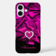 Elegant Dark Pink Silk Look Black Heart Jewel Case-Mate iPhone Case