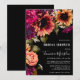 This elegant dark moody purple, burgundy, yellow, orange and white floral boho bridal shower invitation features feature a dramatic set of flower graphics, including sunflowers, dahlias, lilies, and roses on a black background, and elegant hand lettered script calligraphy. Easy to personalise with your own information, and the background colour is also customisable. These invitations are perfect for the bride planning a boho wedding, garden wedding, vintage wedding, romantic wedding, floral wedding, or outdoor wedding. Easy to personalise with your own information, and the background colour is also customisable. Design by T.K. Goforth.