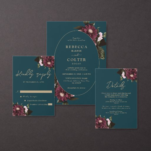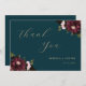 Elegant Dark Teal Burgundy Floral Wedding Thank You Card