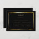 Black & Metallic Gold Wedding RSVP Response Card. Dinner Options. Black back.