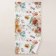 Floral-patterned towel set featuring vivid flowers, butterflies, and dragonflies. Top image shows the set hung on a rack; bottom displays it flat.