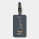 Elegant fully customisable luggage tag design with deep blue background and bold brown monogram. Modern elegant design.