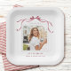 Elegant Deep Blush Ribbon Bow Graduation Photo Paper Plate